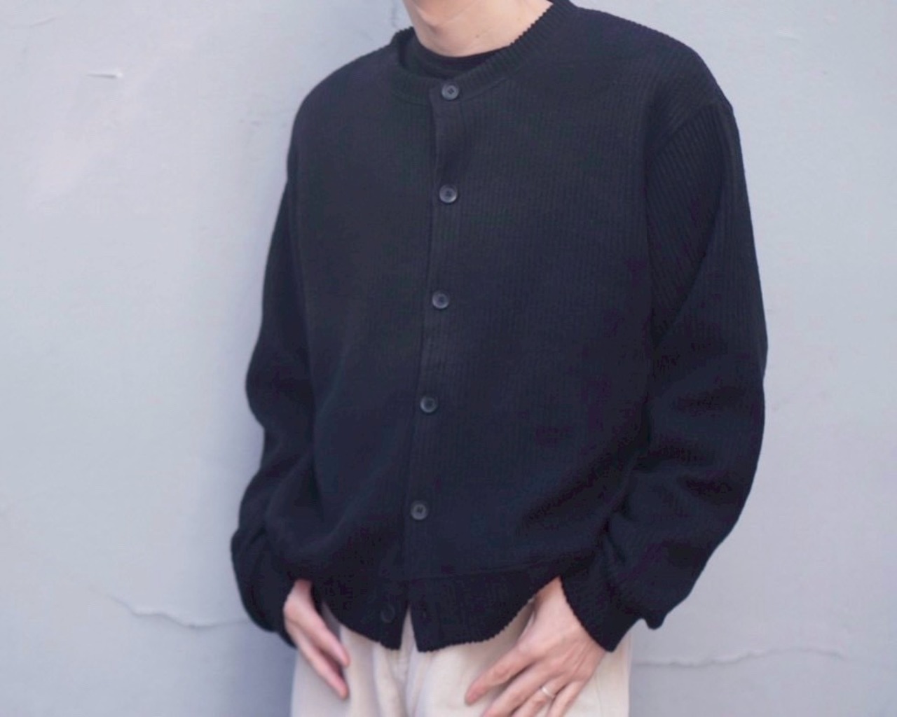 コーデュロイライクな短丈ニットカーディガン。
